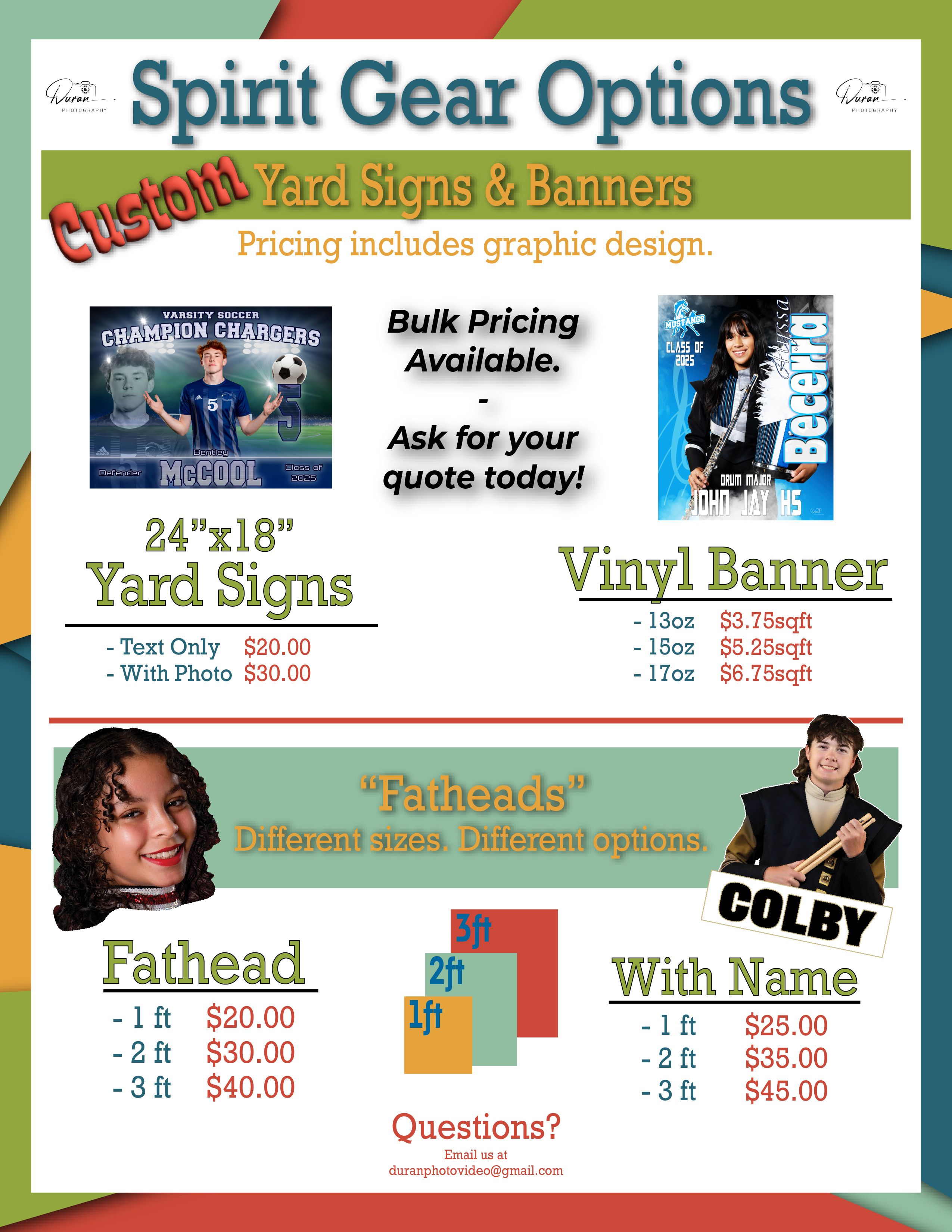Email us at duranphotovideo@gmail.com for more details or place your order here.